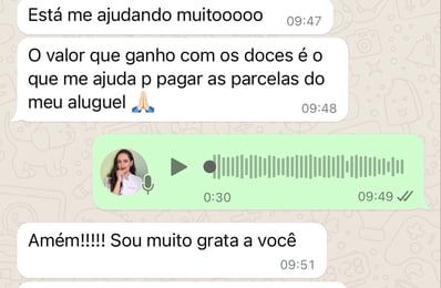 O valor que ganho com os doces é que me ajuda pra pagar as parcelas do meu aluguel 🙏🏼